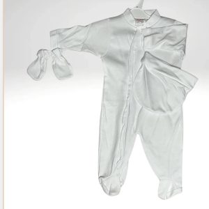 - Ensemble 3 pièces en cotoncomposé de : 1 pyjama 1 bonnet 1 paire de moufle le tout brodé avec soin