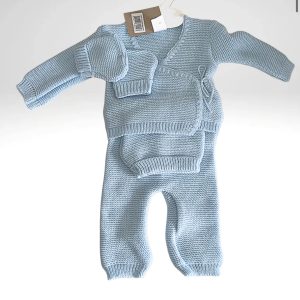 - Composition: - un gilet - un pantalon - un bonnet - des moufles Différents coloris ( de 0 à 3 mois ), idéal pour une tenue de naissance